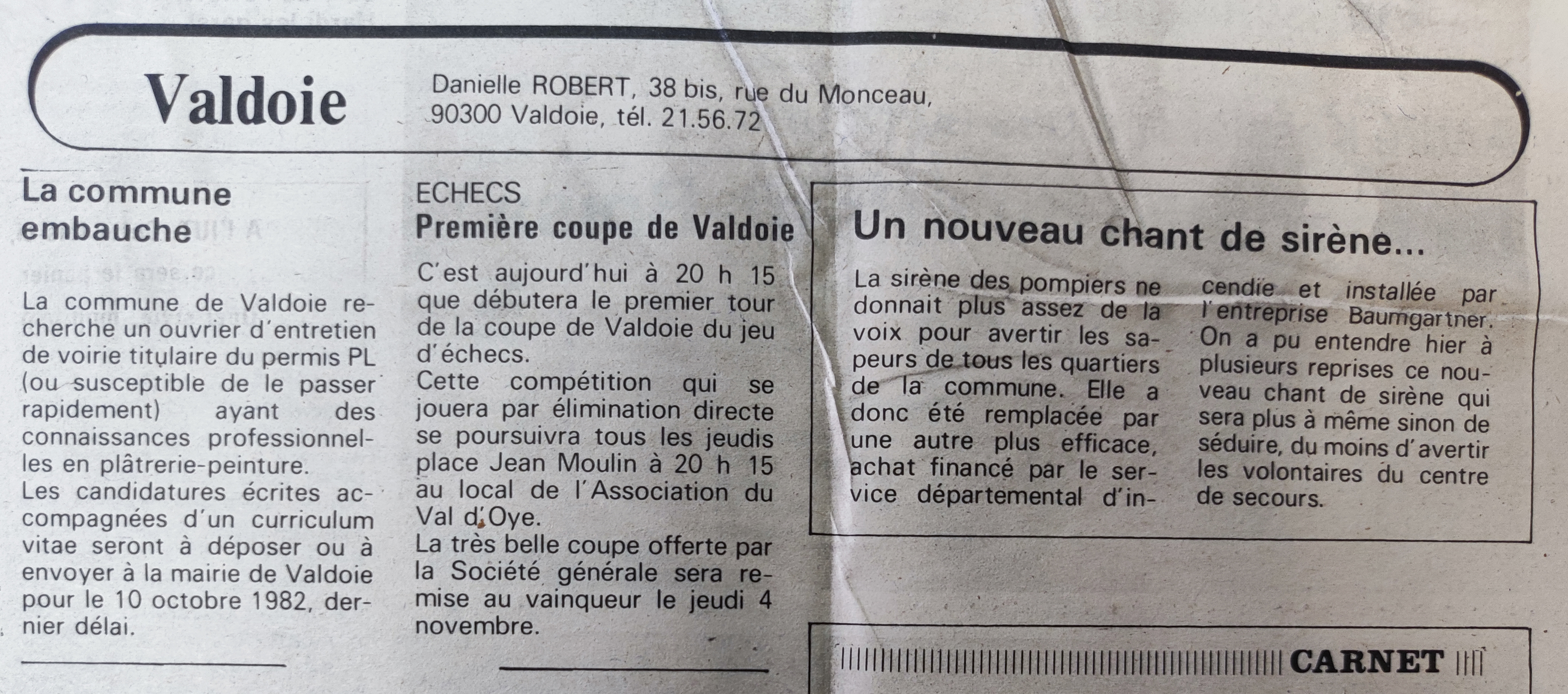 ![]() C'est aujourd'hui à 20h15 que débutera le premier tour de la coupe de Valdoie du jeu d'échecs.