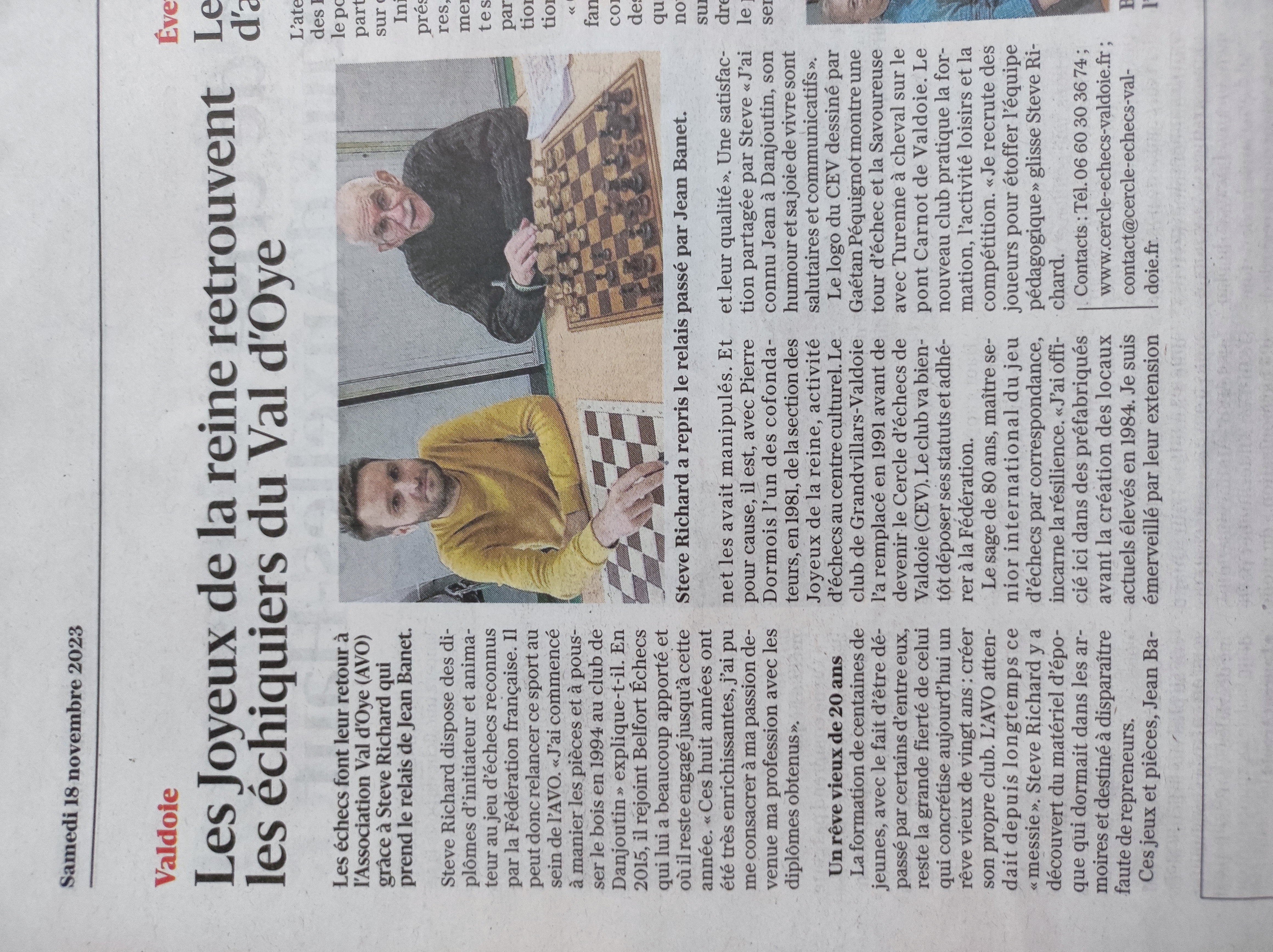 ![]() Steve Richard a repris le relais passé par Jean Banet. Les échecs font leur retour à l’Association Val d’Oye (AVO) grâce à Steve Richard qui prend le relais de Jean Banet.